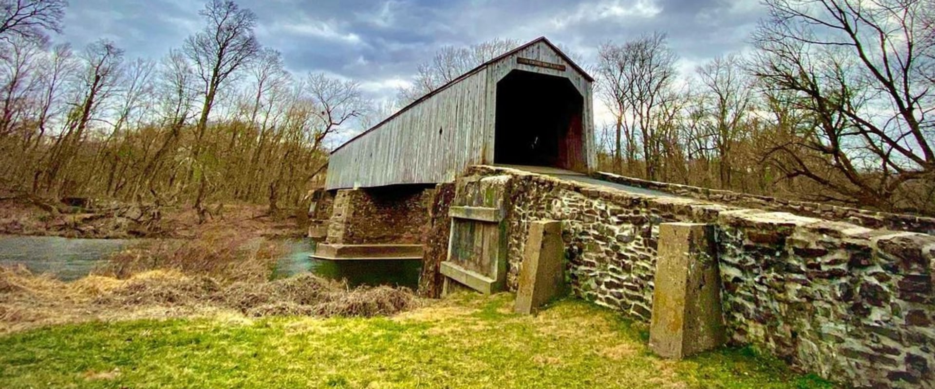 Sheep grazing on lush green grass on an old farm is another popular photo opportunity in Bucks County. The Delaware River Canal is a great spot for a walk on a sunny October morning. The historic covered bridge in Perkasie was moved to a park in 1958 to preserve it after its demolition. The Tohickon Creek Aqueduct pedestrian bridge is located in Delaware Canal State Park and is another popular spot for photographers.
